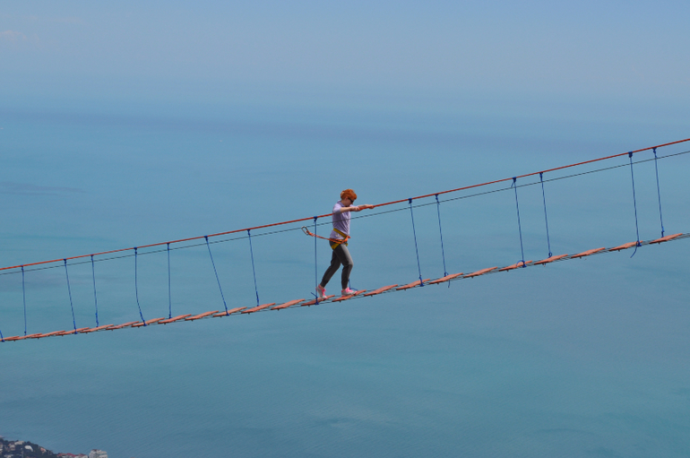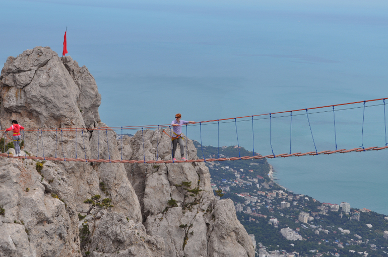 Наверху было очень ветрено и холодно, пригодилась вся теплая одежда. Сходили в Ялтинскую пещеру, очень здорово! Вообще на Ай-Петри 3 пещеры, мы были только в одной. Прошлись с мужем по мостикам между зубцами Ай-Петри. Красиво и совсем не страшно. И цена в 500 р. очень порадовала.