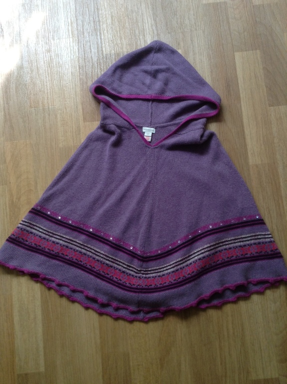 Пончо, очень стильное! На этикетке размер 6-10 лет. Хорошо с 120 до 130см. 500р.