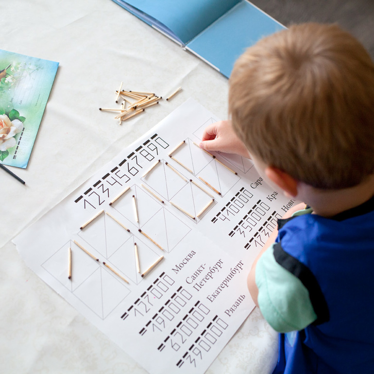 Затем знакомились с понятием индекс через игру со спичками. Ваня выкладывал цифры по заданному мной индексу, а потом мы поменялись, я выкладывала, а он угадывал город из списка.