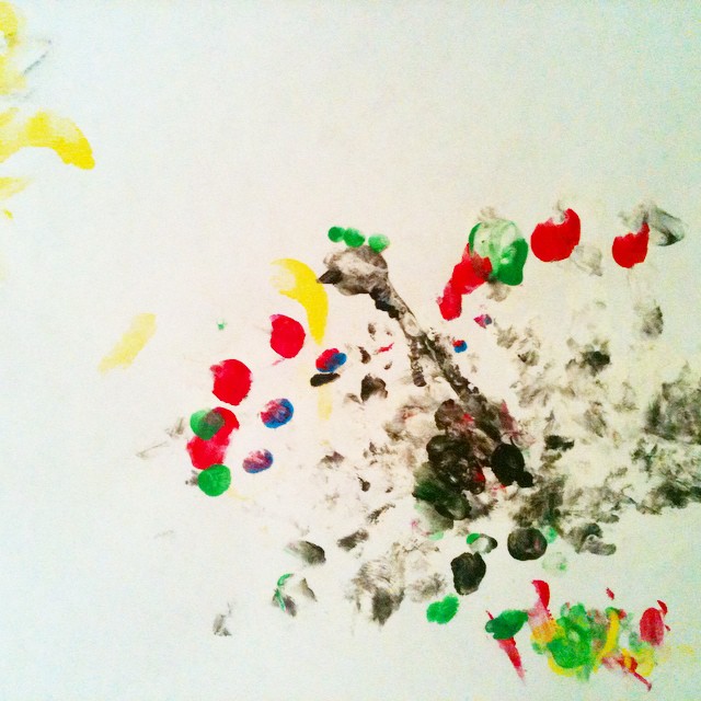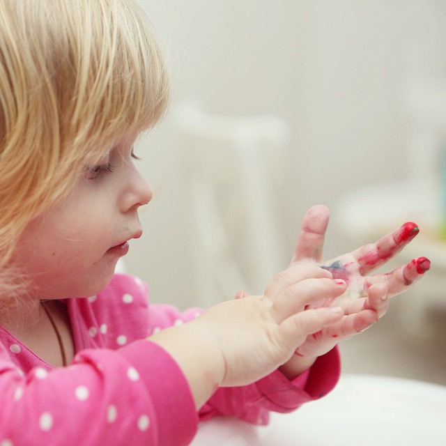 Жаль только ненадолго ее поглощает творческий процесс, 15 минут максимум... Зато петь готова долго, особенно, когда спать надо ложиться))))) #творчество #ребенокрисует #пальчиковое_рисование #чемзанятьребенка