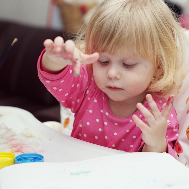 Ладошку куда интереснее красить!) #чемзанятьребенка #творчество #пальчиковое_рисование #ребенокрисует