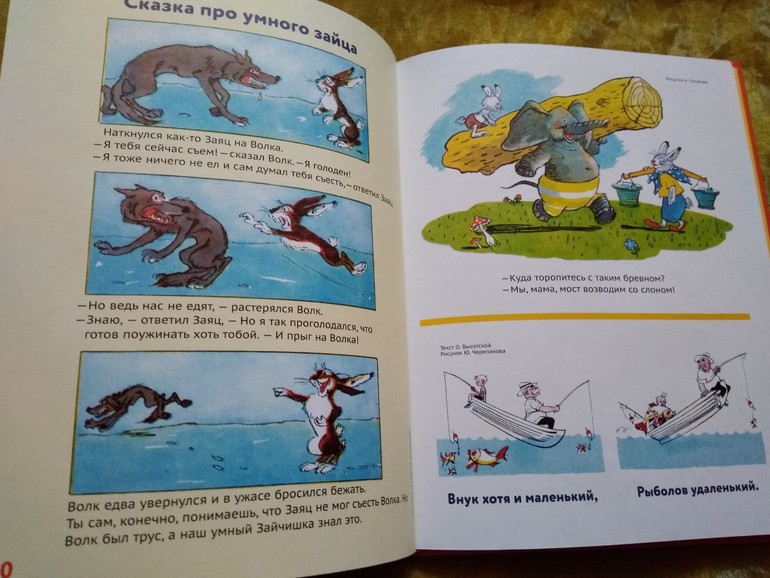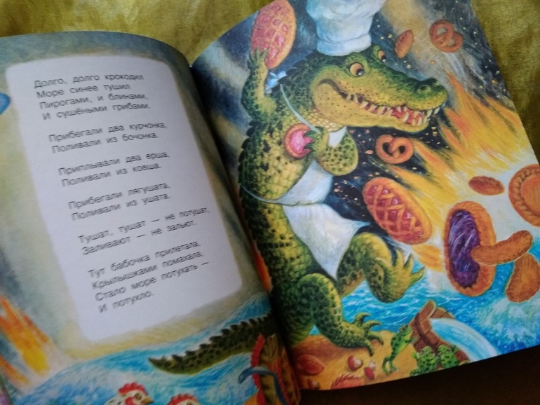 Новая книга почти идеальна - большая, яркая, в твердом переплете, на хорошей плотной бумаге. Хорошее качество печати - цвета умеренной насыщенности, хороший шрифт, интервал, дополнительно порадовало, что стихотворение напечатано очень крупно.