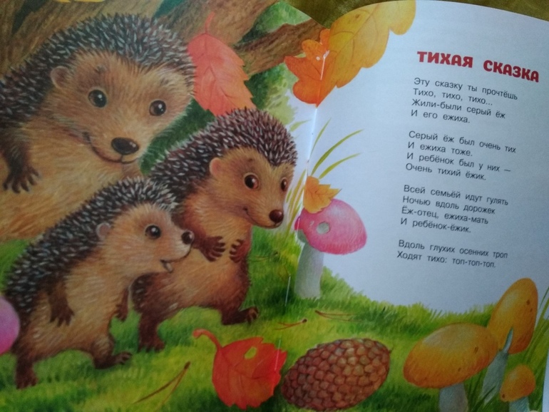 Ну а больше всего я здесь люблю "Тихую сказку" Маршака. Начинать ее надо таинственно понижая голос, порою до шепота... Семейство ежиков прелестно ))