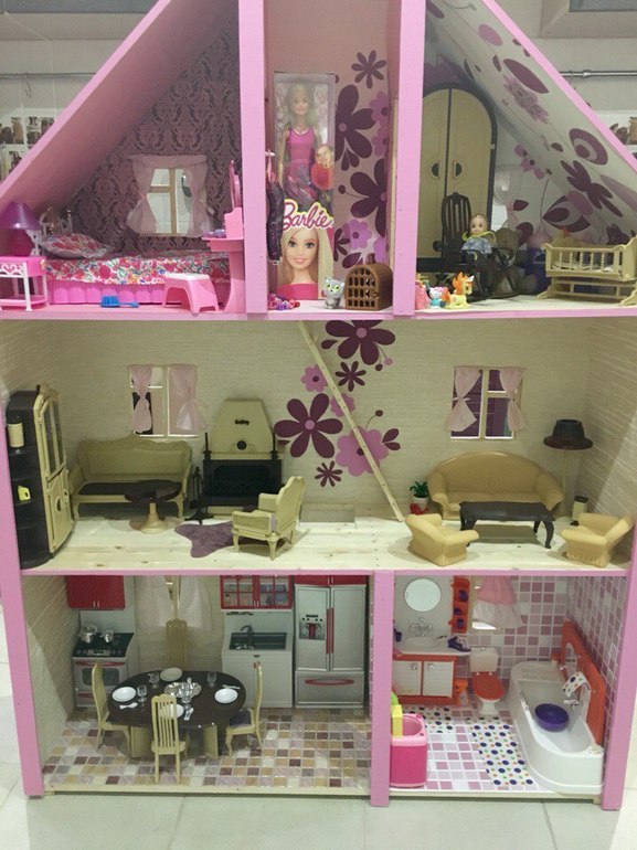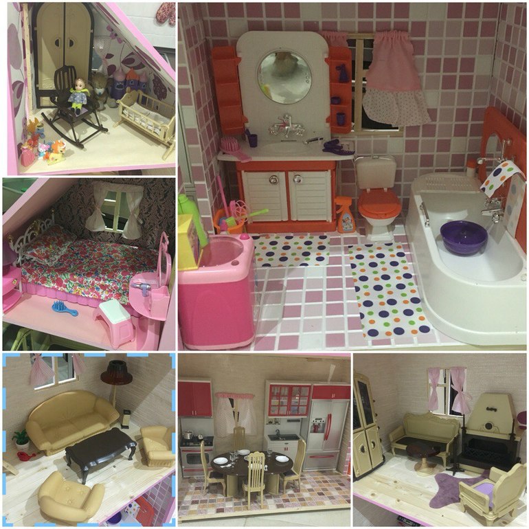 Ностальгия)))) 20 с лишним лет назад мне тоже подарили такую мебель) правда без дома и я уже школьницей была)) И вся мебель в те времена была розовая. А дизайн - прям тот же, до каждого изгиба знакомый)
