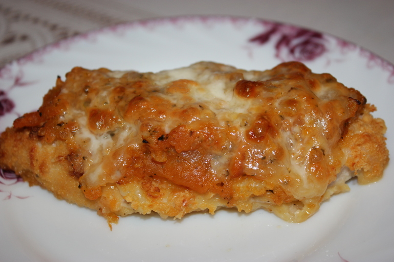 Смешиваем сухари с пармезаном ( одна часть сухарей и одна часть сыра).