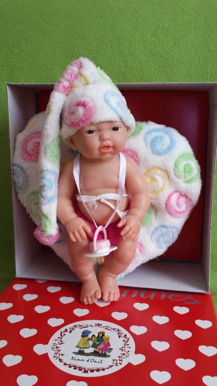 Пупсики на подушке. Каждый пупсик живёт в коробке. В комплекте:пластиковая соска, подушка в виде сердца, одежда. Размер пупсиков: 35см.
