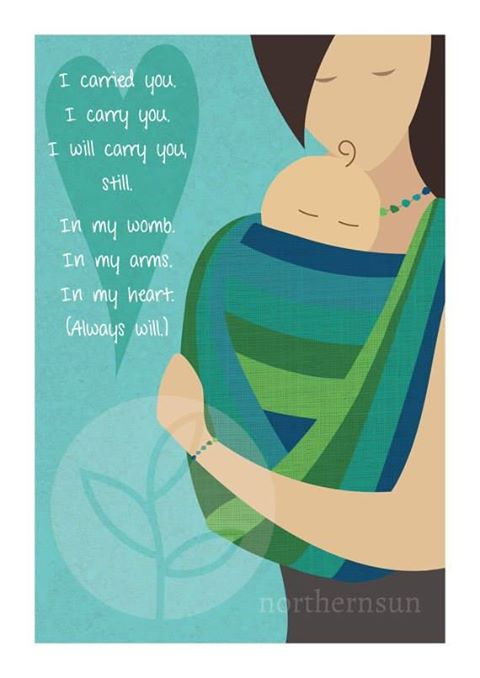 Надпись: «Я носила тебя. Я ношу тебя. И я так же буду носить тебя. В своём чреве. На своих руках. В своём сердце. Всегда».