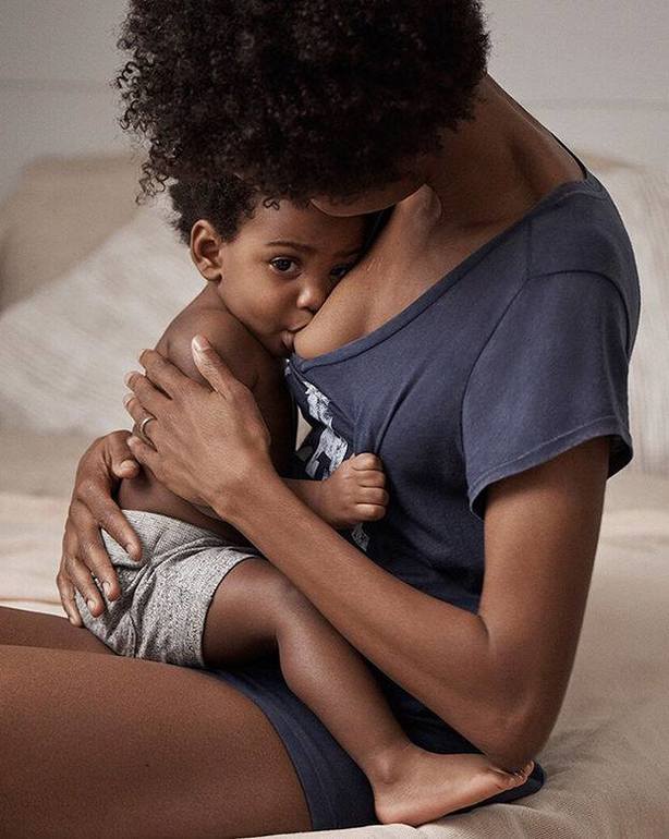Реклама бренда одежды Gap с кормящей женщиной произвела фурор в сетях. На плакате чернокожая женщина кормит грудью сына.