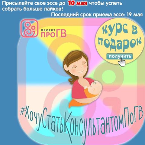 На следующей неделе начинаем собирать лайки на ваши истории о том, почему вы хотите стать консультантом по грудному вскармливанию. Торопитесь, если вы еще не прислали нам свою историю. Может быть именно ваше эссе станет победителем и вы получите БЕСПЛАТНОЕ ОБУЧЕНИЕ НА КУРСЕ "КОНСУЛЬТИРОВАНИЕ ПО ГВ"! Победителя определим 20 МАЯ!