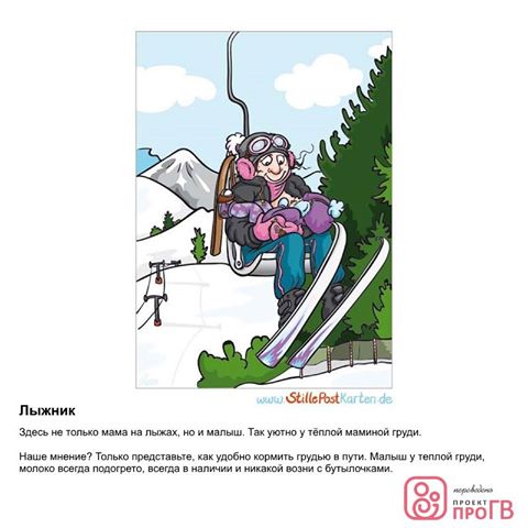Из серии открыток, выпущенных при поддержке Профессионального союза немецких консультантов по грудному вскармливанию и ВОЗ/ЮНИСЕФ в рамках инициативы «Больница дружелюбная к ребёнку».