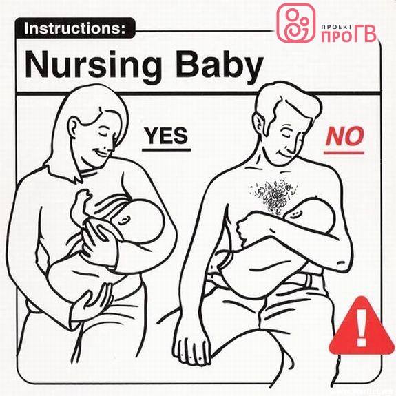 Надписи: Инструкция. Кормление ребёнка. Да. Нет.