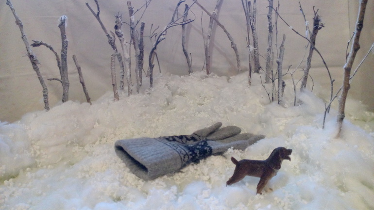 Однажды холодным зимним утром пошел дед в лес дрова рубить и взял с собой свою собачку.Шел дед по лесной тропинке,да оборонил рукавичку,а потери не заметил.
