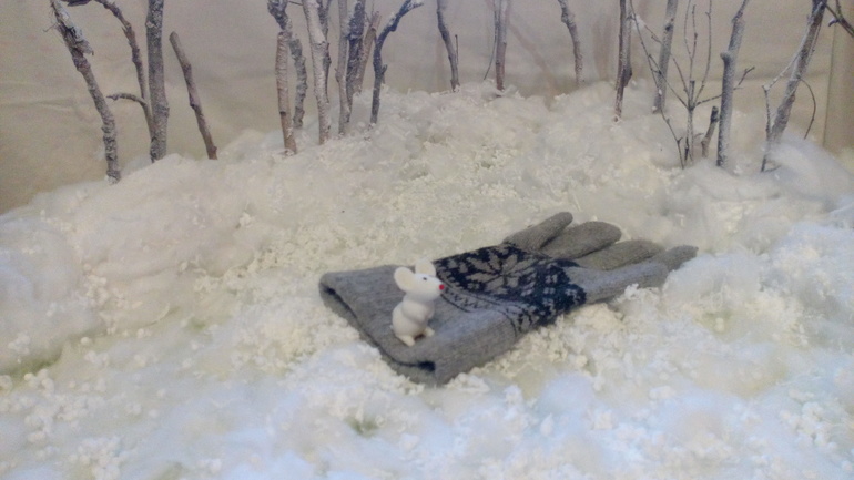 Бежала по той тропинке мышка-торопыжка.Увидела рукавичку и обрадовалась:
