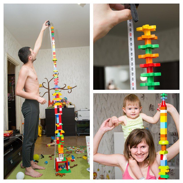 Участвуем в конкурсе на самую большую башню из лего) Строили, Алиса расселяла животных по этажам) Вот такая башня у нас получилась, высотой 201 см) Подробности конкурса здесь: http://www.babyblog.ru/community/post/igraem/3145343 #Конкурс_Вот_такой_вышины