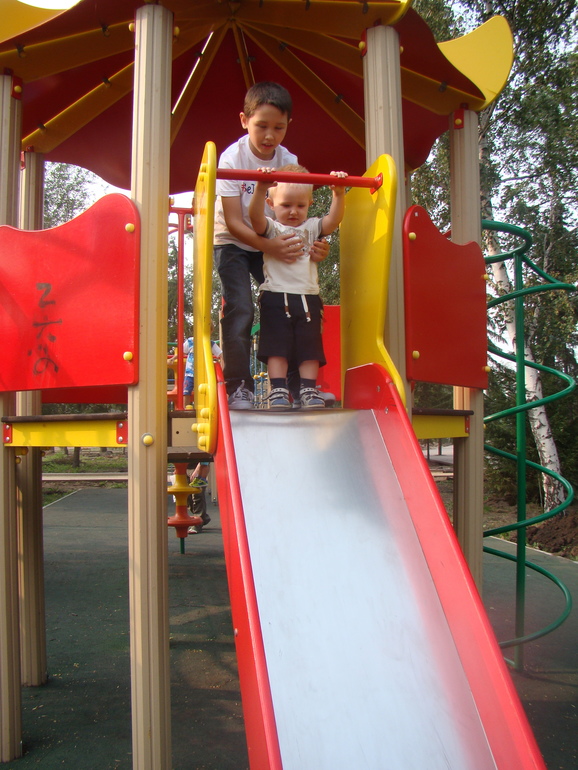 Зато радует, что может быть он научится с детками дружить, общаться и играть вместе... Хотя не уверенна, он в своём собственном мире и не любит, когда ему кого-то навязывают или кто-то к нему лезет. Он очень добрый мальчик, игрушку, хоть и играет сам ей, если кто-то выхватит, назад не забирать не станет, будет либо плакать, либо просто закроется и будет молча, надувшись сидеть. А детки, с которыми мы успели познакомиться там в основном могут друг у друга что-то забрать (то, чему я его учу сойдёт на нет, не разрешаю отбирать силой игрушки, учу спросить разрешение хозяина игрушки и говорить спасибо), хоть он не спросить, не сказать спасибо не умеет, говорю за него я, он в этот момент просто жестикулирует, машет головой спасибо) Не люблю, когда дети пользуются грубой силой! Не хочу чтоб это к моему ребёнку применялось и показываю ему, что другим тоже не будет приятно такое отношение. А ещё он очень стеснительный, хоть и умеет разговаривать, будет просто молчать и ни слова с него не вытащишь. Он больше всего любит играть с нянями (Рахат и Диана) и полюбил взрослых (но не всех, придирчив очень к людям). Чужой человек если с ним начинает говорить, сразу же лезет ко мне на руки, прячет личико на моём плече, боится и стесняется. Лично наше с Сашей мнение, что ни Андрюшка, ни мы не готовы к садику. Зато дедушка наш просто рад!
