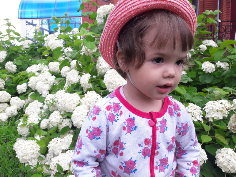 Маруся примерно 87 см роста, вес не знаю, средненькая) Челочку хочу отрастить, без нее ей идет больше) Режим наш особо не изменился, дневной сон по-прежнему через раз. Много гуляем, 2-3 часа утром и 2 часа вечером. Чаще всего у себя во дворе. Маша стала лучше себя вести с детками, больше не толкается, не ругается. Может быть помогло, что я как попугай повторяла ей "надо играть вместе. Можно делиться. Можно играть по очереди" и т.п. Если у нее отнимают, плачет " Дай, пожалуйста"))) Бывает вредничает, нужно то, что только взял кто-нибудь другой и кричит своё. А у нас на песочнице есть общие игрушки и вот из-за них еще бывают разборки. Воюю чтобы не купалась в песке, в прямом мысле. У нее есть игра будто она купается и при этом ложится на песок) В жаркие дни ходили по песку босиком ( у нас хорошая песочница, чистая, с крышкой)Любит качели, горки. Ходим с ней на почту, папа иногда берет в магазин. Обожает ездить на машине, просто вот хлебом не корми)