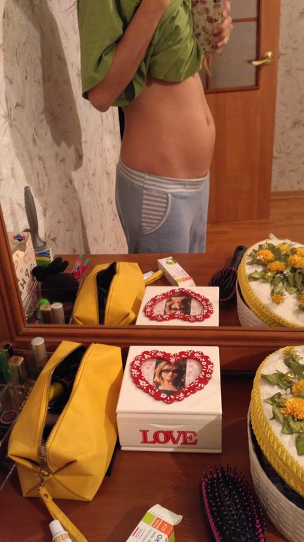Сегодня нам 17 неделек) пару дней назад малыш меня обрадовал первыми пиночками, вчера было тихо, а сегодня единичный стук. Но я рада и ему) развила такую теорию насчет тонуса и утренних бугорков: в общем, по утрам всегда напряженный огромный живот лежа, в течении дня уменьшается и мягчает, а на сл. утро тоже самое. Сегодня встала и пошла гулять с мамой по рынку. Ничего не тянуло, не болело, прогулчлись хорошо. Пришла, лягла на спину - а живота как и не было никогда. Обычно я целыми днями лежу и соответственно всегда наблюдаю бугорок, а это лягла и ровно. Ну думаю, положу руку, послушаю. И тут в районе лобка слышу копошения. Лежу дальше, копошения чуть выше и начинает вылазить потихоньку бугорчик...а потом и бугрище. В общем, я так поняла, что когда ходишь малыш прчсеттся где то глубоко в тазу, а стоит лечь на спину, ему становится не удобно, вот он и вылазит наружу) у меня как то так, у вас нет такого прикола? Значит это не тонус, я сегодня прям четко услышала поднимающиеся движения и увидела как бугорчик выпячиваеться ) еще начала болеть спина, так рано...а уже болит. Пописоны меня не покидают с самого первого дня Б. Периодически болит желудок, но то такое, пришло ушло, потихоньку приходят запоры. Вес пока стоит на месте. Незнаю зачем пишу все подробно, вдруг кому то пригодится, мало ли. Ну и вечерний 17 недельный пузик,рамтет по чуть чуть