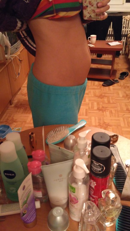 Сто мы имеем на сегодняшний день: тошнота ушла, сонливость наоборот напала) аппетита как не было, так особо и нет. Прибавка всего лишь 500 грамм. Вес до Б 53,5 , сейчас 54. Но я уже лет 5 точно водном весе, поэтому прибавка будет только когда малыш начнет интенсивно расти. Пузик вроде растет, но по фото предыдущим не скажешь)грудь.....выросла то давно и не болит уже, но так рано начали вылазить растяжки...не смертельно, но рановато, не ожидала. Иногда тянет правый бок, терпимо, но долго бы ювает) наверно матка там тянется, так как там обитает местный житель )ну и фото отчет в 16 недель: