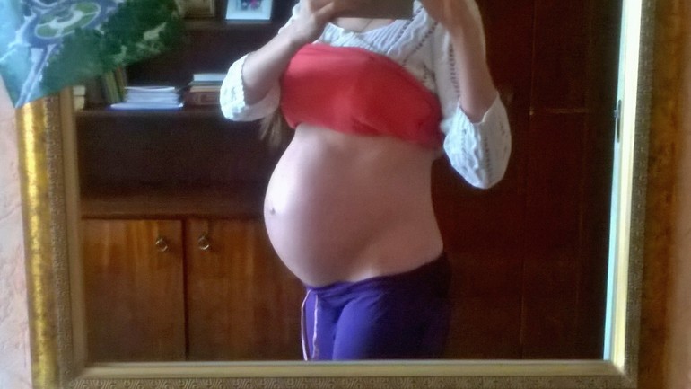 А мы всё растем и набираемся сил :) К тому же кое-кто(не будем показывать пальцем) у нас очень любит побоксировать или покаратировать (уж не знаю,есть ли такое слово)! Вообщем обычно вечером наступает сеанс массажа живота изнутри :) Мы еще любим поикать, и подолгу!