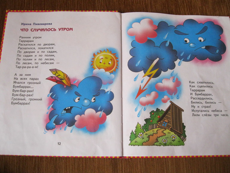 В "Утренних песенках" от "Оникса" понравилось содержание (взяла почитать несмотря на картинки): Берестов, Мошковская, Пивоварова, Токмакова, Яснов и др. со стихами про утро, солнце, умывание, зарядку, кашу. Очень много полезных стихов, теперь мой ребенок, например, под стихотворения "Уши" Мошковской и "Гном" Токмаковой спокойно позволяет себе почистить ушки. Но полюбилось больше всего нам стихотворение Пивоваровой "Что случилось утром":
