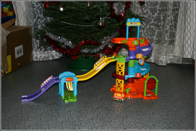 А в коробке была парковка VTech Go! Go! Smart Wheels. Я долго колебалась в выборе между ней и сильно любимой нами ELC.