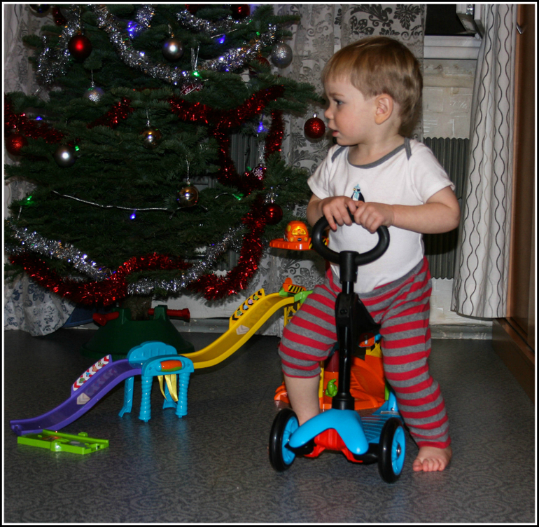 Как и с парковкой, сначала Даник держался сторонкой, лишь изредка делая попытки вспомнить как кататься, а ближе к вечеру уже рассекал по комнате. Завтра уберу до весны, ибо тут кататься все равно негде(((((
