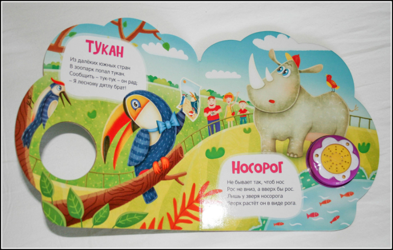 Говорящая книжка "Мой любимый зоопарк" Эта книжка из серии Азбукварика, которую мы собрали уже почти полностью. Очень нравится мне голос, стишки и приятные, ясные и понятные картинки. Динамик так же заклеен скотчем.
