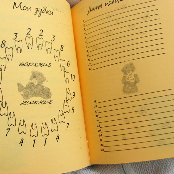 Привет, девочки! Я прибежала сегодня показать вам дневничок для мамы с милыми лохматыми мишками))). Со всем необходимым для заметок о своем малыше в первый год его жизни. Формат А5, листы в линию с мишками и цитатами про деток. Есть таблички с данными роста и веса, графики роста зубиков, данными развития, смешными фразами, а также места для отпечатков ручки и ножки малыша. На форзацах есть кармашки для бирочки и других мелочей и места для фото. Обложка обтянута хлопком, все детали декора пристрочены, завязки из хлопковой ленты, есть закладка.