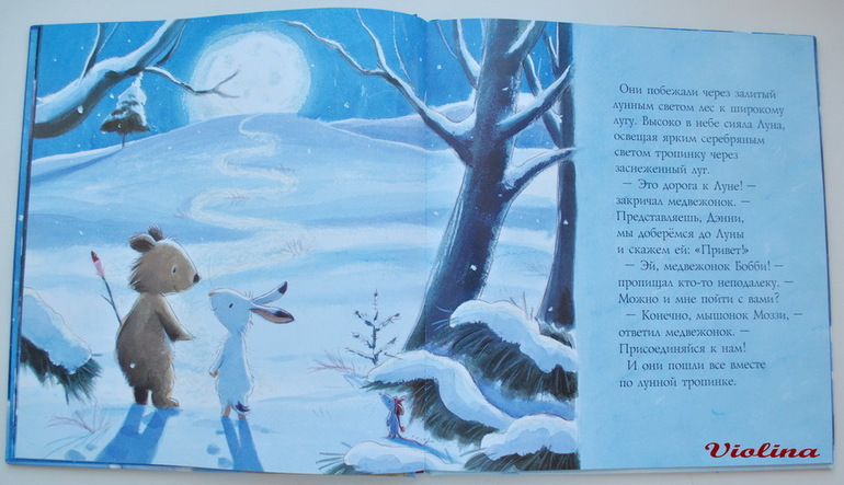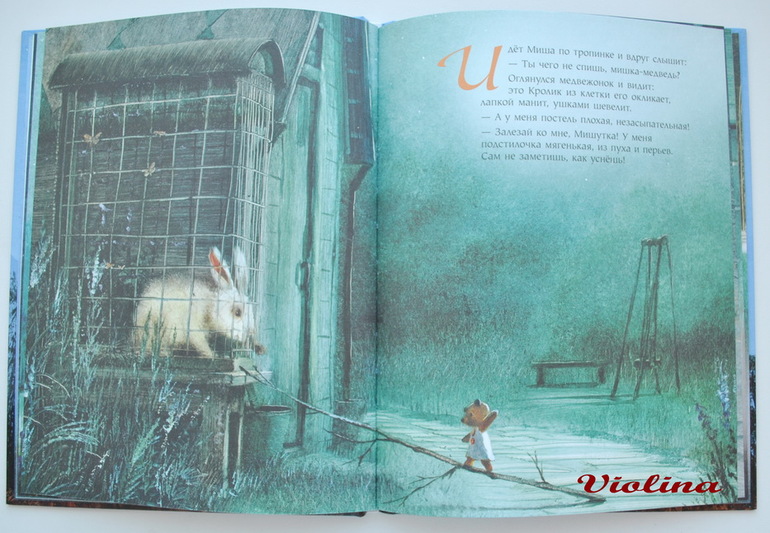 Мне очень нравятся иллюстрации. А вот насчет текста не все так прекрасно, хоть сказка и добрая, и легкая для восприятия. Есть момент в книжке, где медведица косвенно утверждает, что к зайцам она не ходила, а на картинке мы видим обратное :( Небольшое несоответствие текста и картинок. Текст мне пришлось немного переделать. Еще немного странно, почему в сказке медведи, тигры, барсы, зайцы живут все вместе рядом.