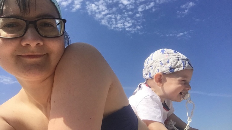 Всё забываю показать, до чего дотренировалась. Лидка в лагере. Тоня в садике. Муж в отпуске, ремонт делает в детской. Так что вместе, только я и Дёма. Уже успели загореть.