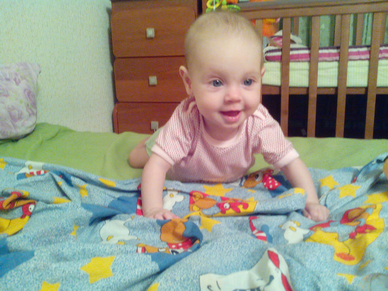 Первые попытки ползать в 6 месяцев. И сильные расстройства по поводу того, что не получается))