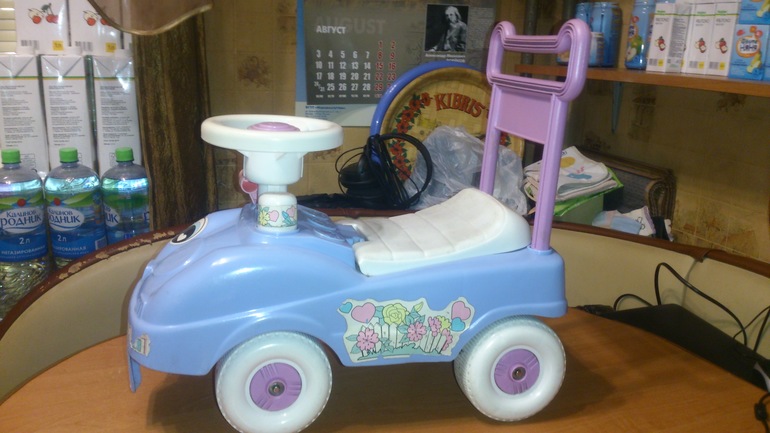 фото 3 (машинка каталка), нет одной наклейки глаза, надо помыть, гудок и тд. работают.-ОТДАЛА