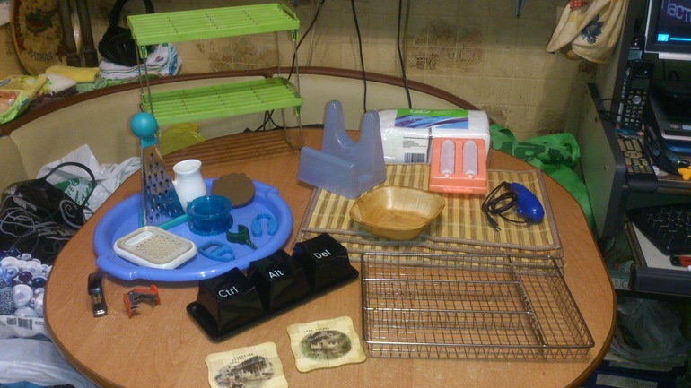 Отдам пакетом (2 полки, салфетки, щетка для ковра, терка, поднос, молочник, терка для сыра, открывашки и штопор, подставка для крышки, степлер + антистеплер, пылесос для компьютера, терка для орехов и тд.)