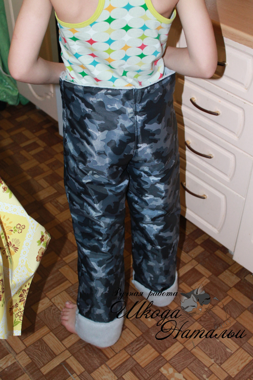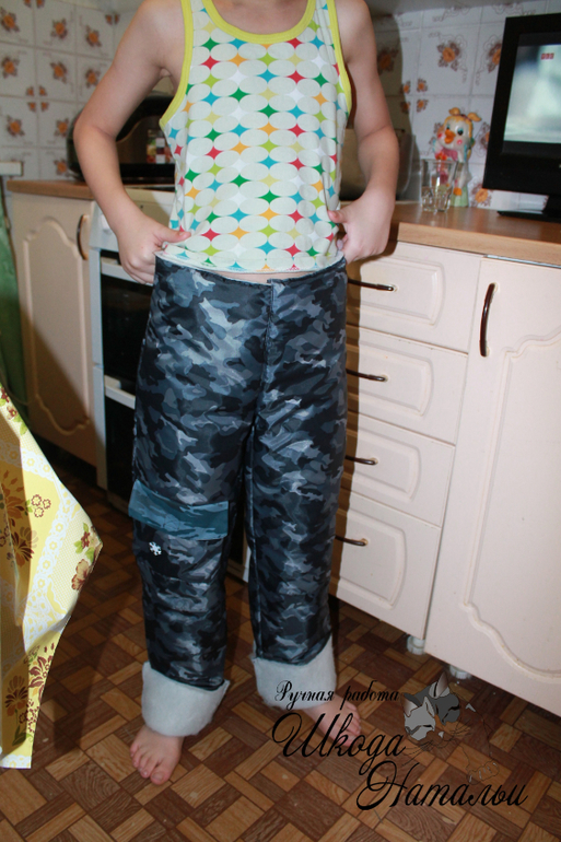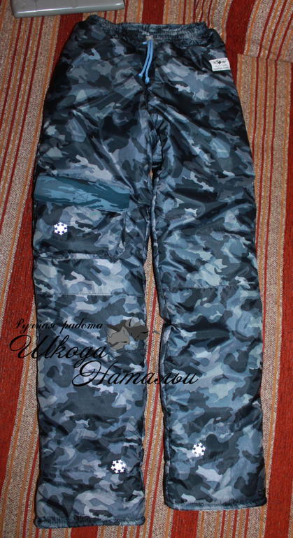 Наверное не только у меня сын любит кататься с горки после школы на попе и на коленках, порвал уже двое магазинных теплых брюк, носил не больше 2 недель, что то путевое у нас в магазинах его размера с трудом найдешь, приходится ездить в соседний город за 170км, так что не вариант и я решила сама сшить ему брючки, лежала подаренная плащевочка без названия, но достаточно плотненькая и принт мальчишеский, на подкладе альполюкс 200, вполне достаточно, так как под эти брюки он одевает термо-бельё, в общем вот что из этого вышло...