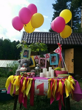 Поскольку мы летние и погода позволяла, отмечали на даче. Устроили праздник: мама придумала конкурсы, папа развлекал дачными придумками, я украсила все и заказала красивый торт.