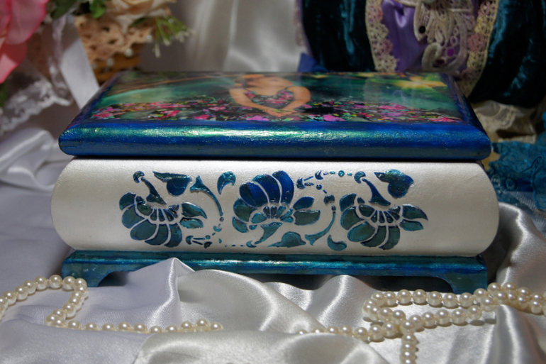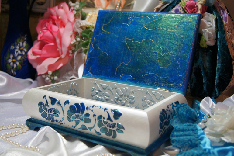 " шкатулка сделанная для красивой пары. Внутри бархат, специальный состав и трещинки, золотые контуры и камни. И конечно монтаж..