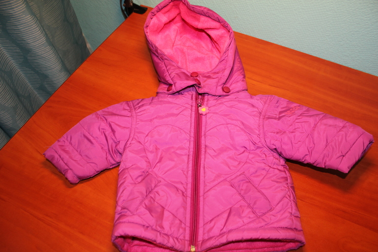 Курточка, красивая белсящая ткань, немного утеплителя, флисовая подкладка, рост указан 68, примерно до 9 мес. На весну супер. Очень ее любили. 300 руб.