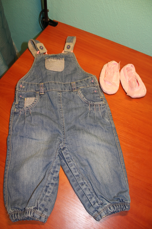 Комбенезон мазека джинсовый, одет пару раз, в машинке не стирала. Очень милый, сейчас такие комбезы у них по 2000 висят. 400 руб. 6-9 мес., на подкладке, на мой взгляд чуть маломерит, до 7 мес примерно. пинетки одели пару раз 150 руб.