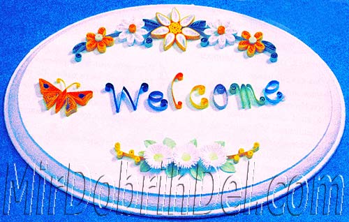 В этом декоративном «панно на двери для приветствия гостей» используются буквы, белые цветочки и бабочки, которые напоминают о весне.