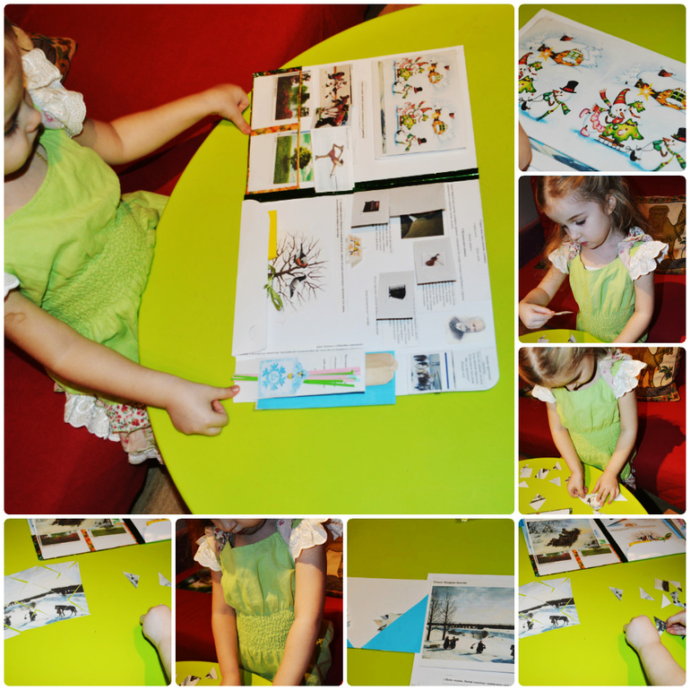 И так сначала мы нашли отличии на картинке и собрали пазлы из картин.