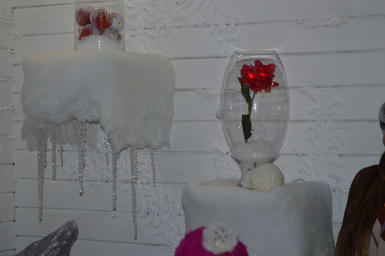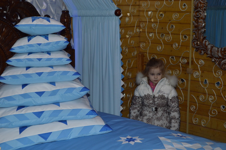 И так, комнат у деда Мороза 13: гардеробная, спальня, комната, где делают снежинки, комната с книгами, комнаты с елочками разных видов и разных размеров и т.д. Пробежали по терему и пошли гулять по вотчине, дошли до зоопарка, но когда встал выбор о его посещении или катание на ватрушках с супер крутой горы, то конечно выбрали последнее. Накатавшись вдоволь, заглянули в зимний сад, там бросили монетки в фонтан, загадали желание. Прокатились и на печке Емели (с боем мы все-таки запрыгнули на нее), еще налепили на ледяные скульптуры монетки с желаниями. Пробыли мы там с 8 утра и до 15.00 дня, конечно, устали и были голодны (второй раз нам уже так не повезло со «Снежинкой»), поэтому поехали в гостиницу.