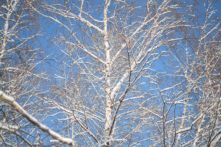 Снег осыпается с берез