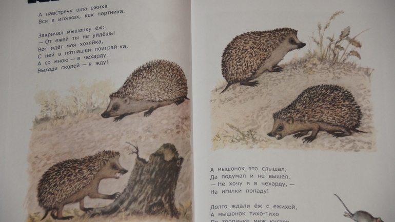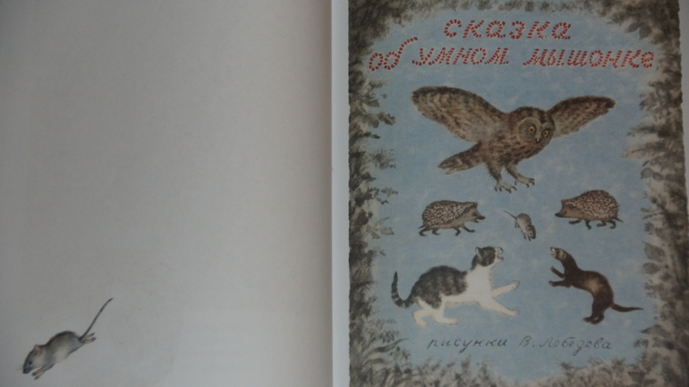 - "Сказка об умном мышонке". Это продолжение, финал счастливый. Опять же рисунки Лебедева: экспрессия, переживания маленького мышонка, страшный лес, страшные звери: еж, сова, хорек... Очень мне нравятся эти иллюстрации.
