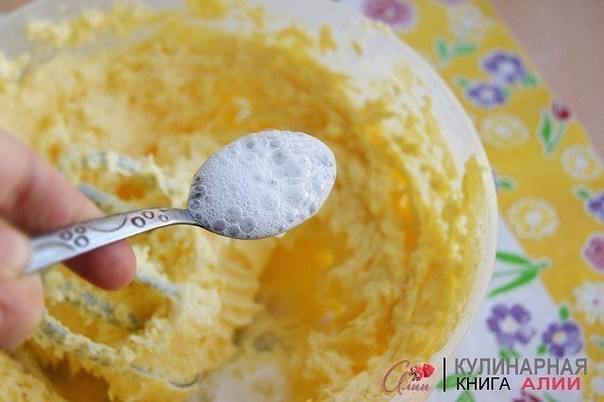 3. Соду (на кончике ножа) погасить уксусом и добавить в тесто