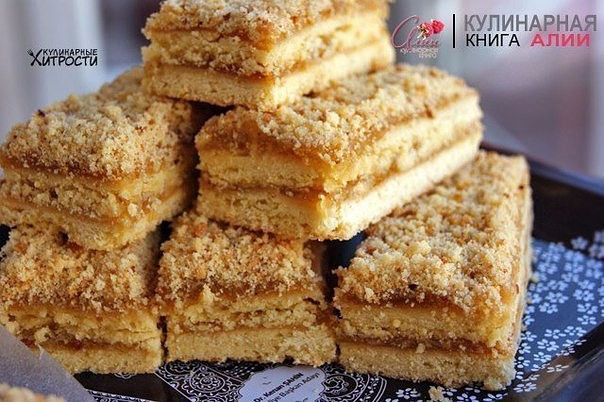 12. Намазать верх оставшимся повидлом. Посыпать крошкой Лучше дать несколько часов постоять, чтобы коржи стали помягче, а потом разрезать на пирожные