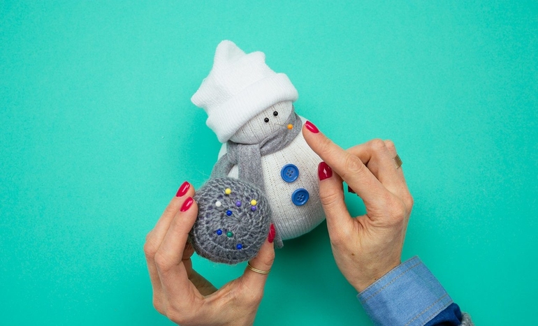 Материалы -салфетки для уборки (нетканые), материал можно использовать любой. -клей универсальный -ножницы "зигзаг" -контуры для ткани -бисер (для глаз) -синтепон (для головы и рук) -декоративная косметика Способ изготовления Делаем чертёж деталей, согласно (фото 2) Вырезаем из салфеток и начинаем склеивать. Голову и руки (R=2см)вырезаем из синтепона и стягиваем через край, чтобы получились шарики. При необходимости наполняем синтепоном. Туловище и рукава склеиваем при помощи клея в виде конуса. Приклеиваем дно. В рукава, смазываем клеем синтепоновые шарики, вставляем и приклеиваем. Голову приклеиваем к туловищу. К голове приклеиваем шапку. Завязываем шарф. Приклеиваем глаза. Из оранжевой салфетки вырезаем треугольничек, смазываем края клеем и скручиваем между пальцами, чтобы получилась морковка. Приклеиваем нос к личику. Декорируем и расписываем девчушку-снеговушку. приделываем подвеску.