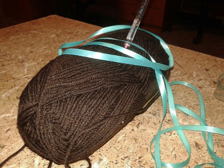 слишком темный получается, поэтому сегодня куплю молочных ниток и буду вязать в две нитки, чтоб посветлее был))))