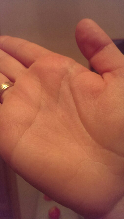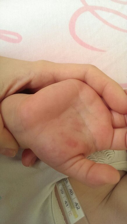 Потом я заметила такое-же у доченьки! Ей 1,10 мес... У нее вся ладонь в мелких-как аллергия! Но они такие же как и у меня- Хотя у меня в разных местах, максимум 2 рядом!