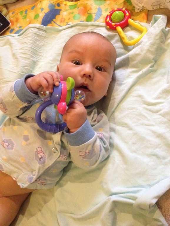 7. Ну и напоследок умелки ))) Марк стал улыбаться в 1,5 мес. А в 2 так звонко рассмеялся! Любит огоньки и купаться