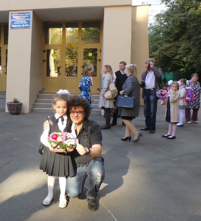 В многодетной семье певца Ромы Жукова радостное событие: дочь Анжелика стала первоклашкой. Счастливые родители отвели малышку в 1 "Б" с огромным букетом цветов. Это уже третий школьник в семье певца: дочь Полина пошла в 6 класс,а сын Никита в третий.